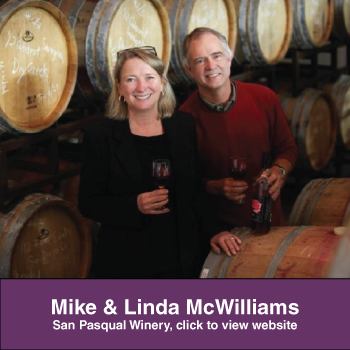 ong time La Mesa residents Mike and Linda McWilliams bought San Pasqual Winery in 2009 when it was San Diego’s first urban winery, then located in Pacific Beach. After working with City Hall to update La Mesa’s zoning regulations to permit production of wine and beer, they established a larger production facility on Center Street. This led the way for what we refer to as La Mesa’s Industrial Revolution, resulting in two breweries and now Wine Works all located within easy walking distance in La Mesa’s industrial area. Mike and Linda are active in the San Diego County Vintners Association, with Linda currently serving as President.